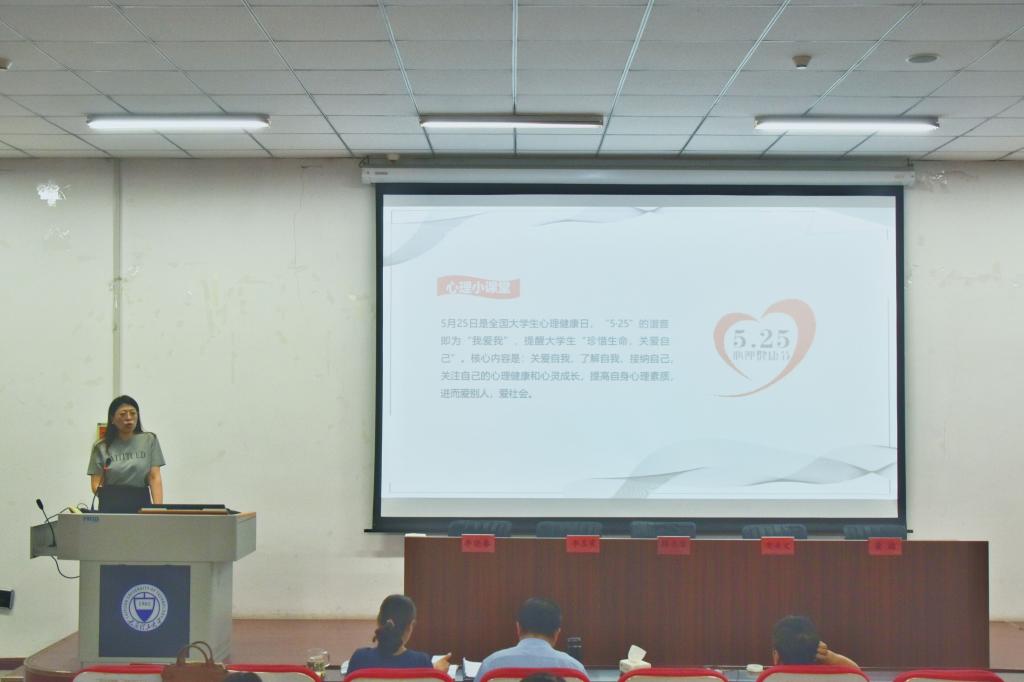 会上,杨雪芬为全体教职工做心理健康辅导讲座。